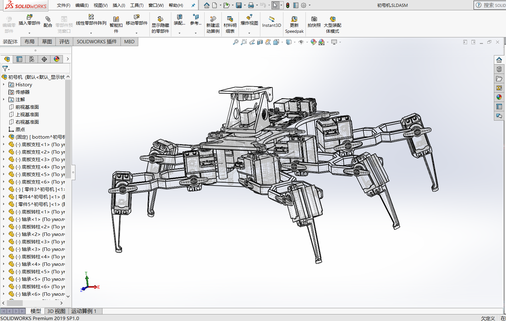 - Designed and implemented the hardware structure of the six-legged robot, including the skeleton and gimbal. The structure was designed using Solidworks 3D modeling software, followed by 3D printing and assembly.
